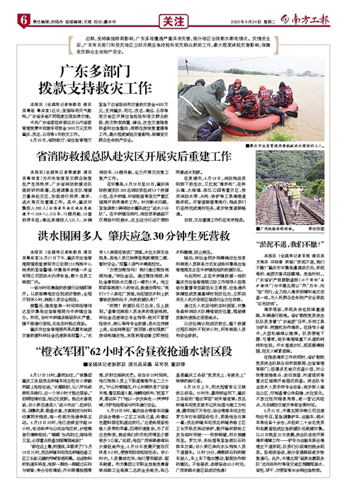 - 广东多部门拨款支持救灾工作 本报讯 (全媒体记者彭新启 通讯员粤组 粤应宣)近日,受强降雨天气影响,广东省多地不同程度出现洪涝灾情。 中共广东省委组织部近日从代省委管理党费中划拨专项资金1900万元支持肇庆、茂名、云浮等