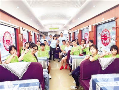 ■2025年全国总工会夏令营广东团的孩子们和随团人员在列车上合影。 单位供图