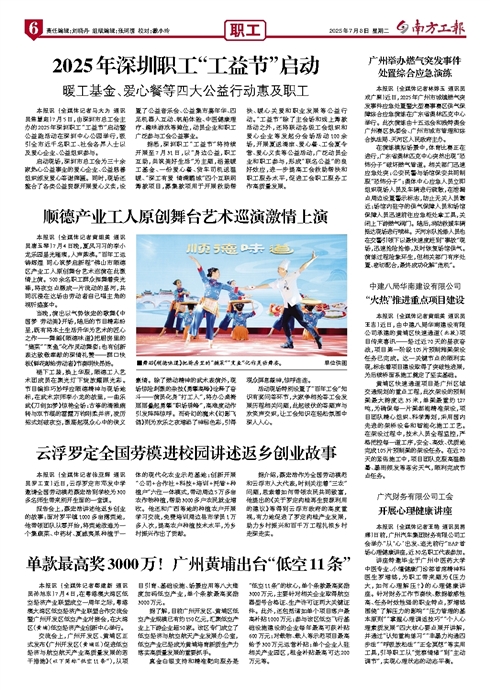 - 2025年深圳职工“工益节”启动 本报讯 (全媒体记者马大为 通讯员焦慧茹)7月5日,由深圳市总工会主办的2025年深圳职工“工益节”启动暨公益跑活动在深圳中心公园举行,吸引全市近千名职工、社会各界人士以及爱心企业、公益组织参与。