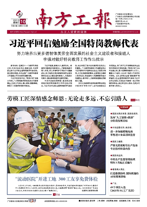 - “流动医院”开进工地 300工友享免费体检 9月9日上午8时,一辆满载专业医疗设备与医护人员的体检专车,开进中建四局承建的广州市妇女儿童医疗中心花都院区项目工人生活区,把专业体检服务送到工地,让健康保障“零距离”触达工友。本次活动由广东省总