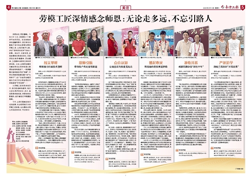 - 劳模工匠深情感念师恩:无论走多远,不忘引路人 师恩如炬,照我攀峰。今年9月10日,我国第41个教师节如约而至。在这致敬老师的温馨氛围中,我们将目光聚焦于各行各业熠熠生辉的劳模工匠,让他们敞开心扉,讲述“我和我的老师”的动人故事。采访中,记者发