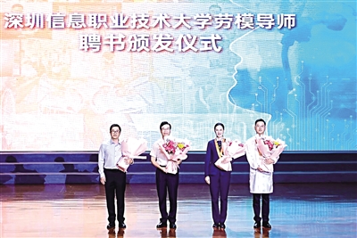 活动现场,该校为4位劳模颁发“劳模导师”聘书。(深工宣)
