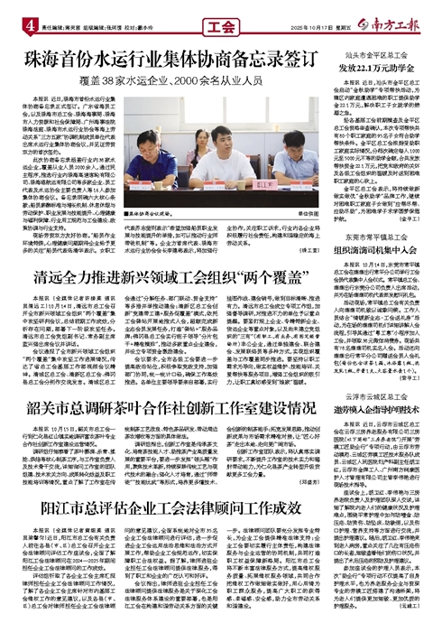 - 清远全力推进新兴领域工会组织“两个覆盖” 本报讯 (全媒体记者许接英 通讯员清远工)10月14日,清远市总工会召开全市新兴领域工会组织“两个覆盖”集中攻坚研判会议,总结前期工作成效,分析存在问题,部署下一阶段攻坚任务。清远市总工会党组副书