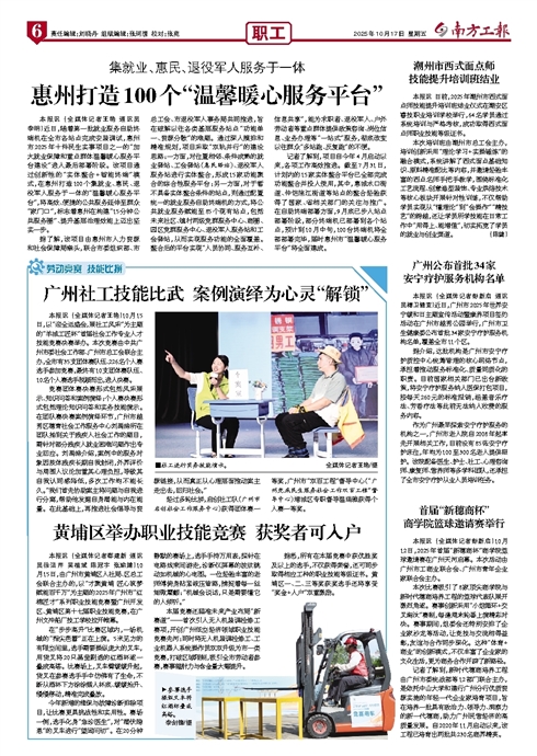- 广州社工技能比武 案例演绎为心灵“解锁” ■社工进行实务技能演示。全媒体记者王艳/摄 本报讯 (全媒体记者王艳)10月15日,以“迎全运盛会,展社工风采”为主题的“羊城工匠杯”首届社会工作专业人才技能竞赛决赛举办。本次竞赛由中共广州市
