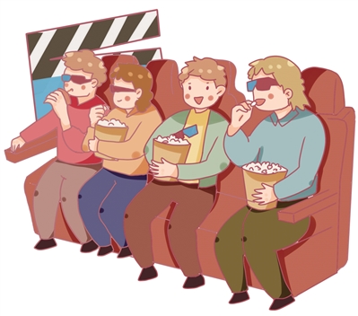 周三电影的播放时间是晚上七点整,稍年长些的职工会带保温杯来,里面或泡着热茶或泡着枸杞。拧开杯盖晾凉,茶叶的清香不知不觉地在这方空间里蔓延开来,若有若无的,是让人舒心的味道。