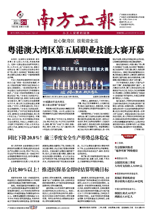 - 粤港澳大湾区第五届职业技能大赛开幕 ■粤港澳大湾区第五届职业技能大赛开幕现场。全媒体记者林景余/摄 本报讯 (全媒体记者黄细英 通讯员粤工宣)以匠心为火炬,用技能来接力。在第十五届全国运动会即将到来之际,10月20日,由广东省总工会