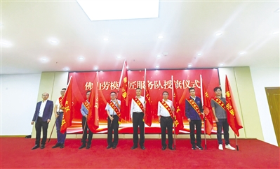 ■会议现场为佛山劳模工匠服务队授旗。全媒体记者黄细英/摄