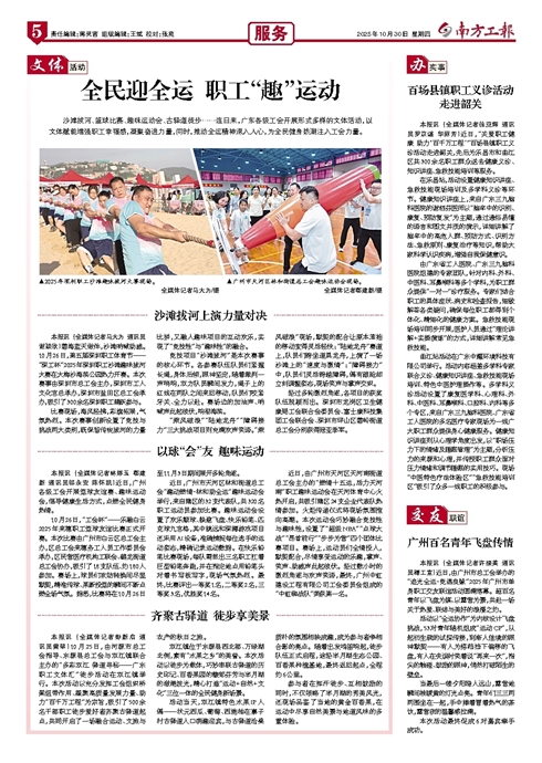 本报讯 (全媒体记者马大为 通讯员谢颖欣)碧海蓝天做伴,沙滩呐喊助威。10月26日,第五届深圳职工体育节——“深工杯”2025年深圳职工沙滩趣味拔河大赛在大梅沙海滨公园热力开赛。本次赛事由深圳市总工会主办,深圳市工人文化宫总承办,深圳市盐田区总工会承办,吸引了300余名深圳职工踊跃参与。