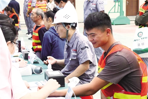 活动现场还特别设置了“工地急救小课堂”,专家演示心肺复苏“黄金按压法”,从按压姿势到人工呼吸节奏,每个细节都讲解得清晰明了。现场工人纷纷用手机拍摄操作步骤,将“救命技能”牢记于心。大家纷纷表示:“工会‘娘家人’把健康送到身边,干活更有劲儿了。”