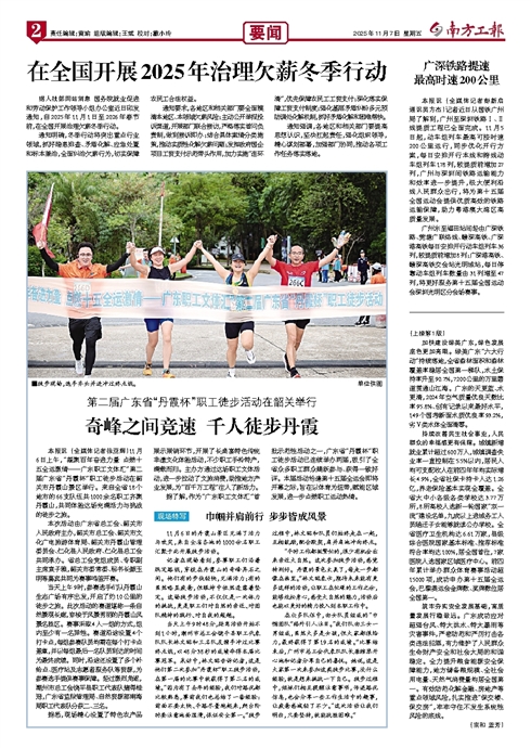 - 在全国开展2025年治理欠薪冬季行动 据人社部网站消息 国务院就业促进和劳动保护工作领导小组办公室近日印发通知,自2025年11月1日至2026年春节前,在全国开展治理欠薪冬季行动。 通知明确,冬季行动将突出重点行业领域,抓好隐患