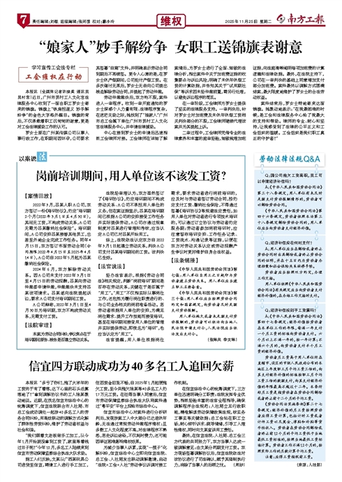“娘家人”妙手解纷争 女职工送锦旗表谢意