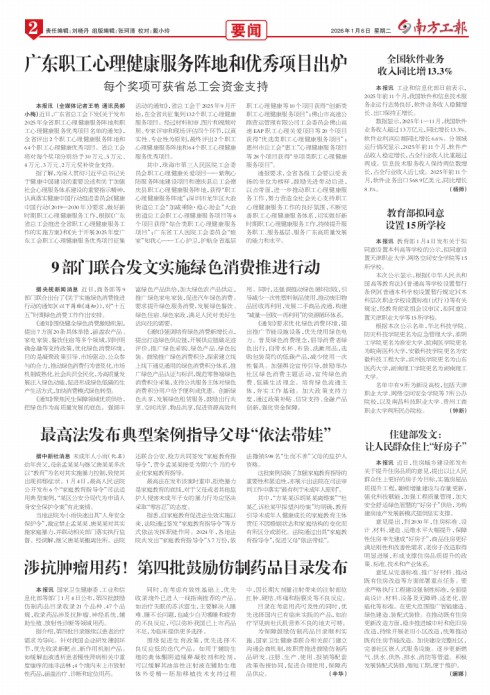 - 广东职工心理健康服务阵地和优秀项目出炉 本报讯 (全媒体记者王艳 通讯员郝小梅)近日,广东省总工会下发《关于发布2025年全省职工心理健康服务阵地和职工心理健康服务优秀项目名单的通知》,全省评出2个职工心理健康服务阵地和64个职工心理