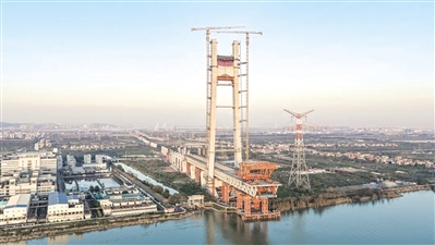 本报讯 (全媒体记者彭新启 通讯员董剑锋 常建伟 史万福)1月11日,随着最后一方混凝土浇筑完成,深江铁路洪奇沥水道公铁大桥50号墩主塔顺利封顶,主塔高达258米,相当于80余层楼房高度。至此,这座大湾区关键交通工程的两座主塔全部完成封顶,标志着深江铁路建设取得阶段性重大突破,迈入中跨主梁架设及斜拉索施工阶段。