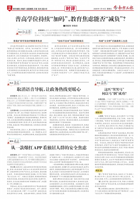 - 普高学位持续“加码”,教育焦虑能否“减负”? 新闻事件:近日,从中央经济工作会议到各地“十五五”规划,均强调推进教育资源布局结构调整,增加普通高中学位供给。1月12日,广东启动“普通高中百万学位攻坚行动”明确2026年将增加20万普高学位,湖