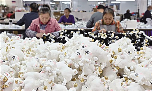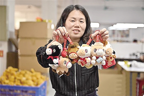 随着马年春节临近,东莞这座“中国潮玩之都”迎来马年“潮玩”生产销售热潮。1月14日,东莞市茶山镇的工作人员展示马年毛绒玩偶。