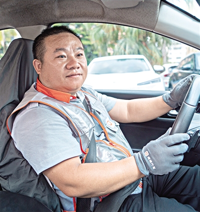 江门市圆统速递有限公司快递员黄海明:从事一线快递员工作多年。坚持客户至上,工作勤恳、任劳任怨、风雨无阻,每日完成600件快件投递任务。9年来,他经手的快递达数十万件,服务数万客户群体,从未因投递质量和服务态度引发任何投诉。