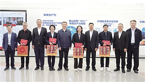 ■黄宁生(左五)到广晟控股集团开展送温暖慰问活动。全媒体记者林景余/摄