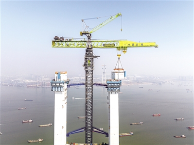 ■狮子洋大桥主塔高度突破300米,成为珠江口第一高塔。 张政/摄