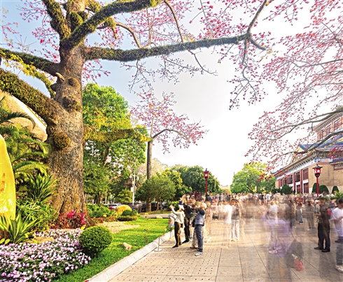 ■2025年“木棉王”盛花期时,游人如织。 郑建/摄
