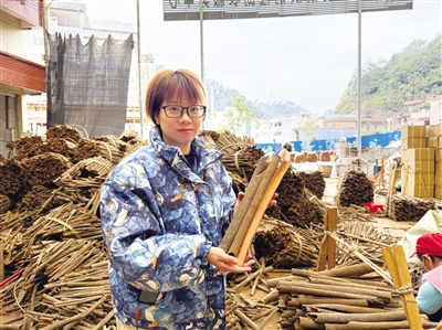 ■罗定源发桂厂负责人崔彩婵展示罗定肉桂。全媒体记者徐亚辉/摄