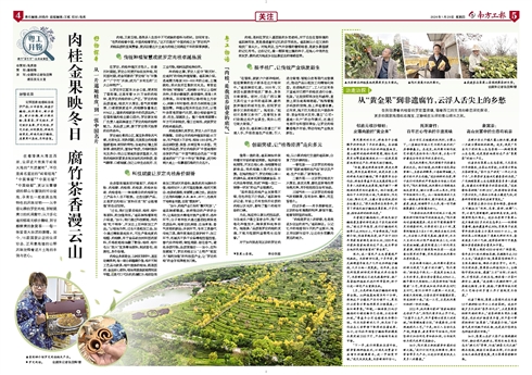 ▲崔彩婵介绍罗定肉桂相关产品。 ▶罗定肉桂。全媒体记者徐亚辉/摄 ▼象窝山茶园。单位供图 ▲关桥新在种植基地观察果实生长情况。 ▲陈汉清展示托洞腐竹。 ▲梁建参在象