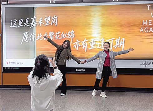 徐女士向记者介绍,她来自四川,姐姐在肇庆工作。趁着女儿寒假,她们特意来广东探亲游玩,计划在广州停留一周。谈及打卡嘉禾望岗地铁站的缘由,徐女士笑着分享:“几天前在网上看到《嘉禾望岗》的MV,旋律和歌词里的故事都特别打动我,就把这里列入了行程清单。”接下来,她们还将前往北京路、陈家祠、永庆坊等景点,沉浸式体验广府文化,品尝地道粤式美食。