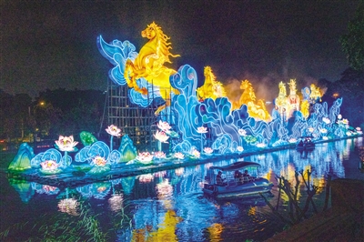 ■游客乘坐游船游览“万马奔腾”灯组。特约摄影师王美燕/摄