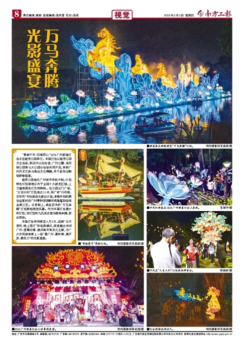 ■游客乘坐游船游览“万马奔腾”灯组。特约摄影师王美燕/摄 ■“哥德堡号”商船灯组。特约摄影师王美燕/摄 ■2026广州新春灯会上的粤剧表演。特约摄影师陈志强/摄 ■市民和游客在2026