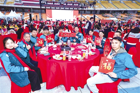 2月9日,由广东省总工会指导,广州市总工会、天河区总工会主办,广州市工人文化宫承办,美高梅文旅协办的“情暖劳动者 穗岁平安年”2026年广州市新春团年饭慰问活动,在紧邻广州塔的海心沙亚运公园启幕。