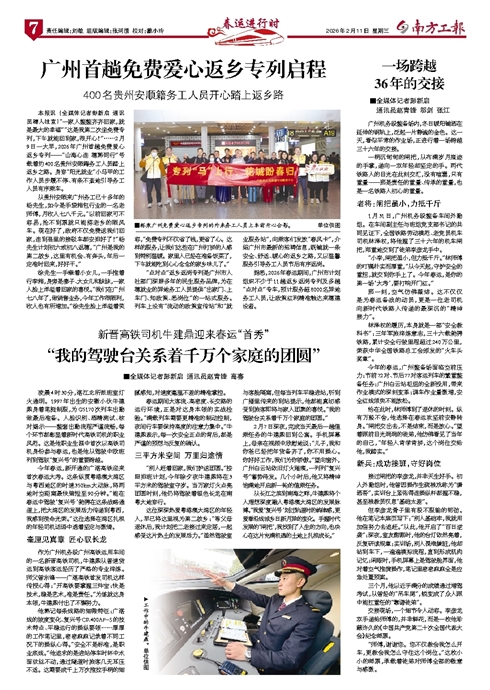 - 广州首趟免费爱心返乡专列启程 ■搭乘广州免费爱心返乡专列的外来务工人员上车前开心合影。单位供图 本报讯 (全媒体记者彭新启 通讯员穗人社宣)“一家人整整齐齐回家,就是最大的幸福”“这是我第二次坐免费专列,下午就能回到家,很