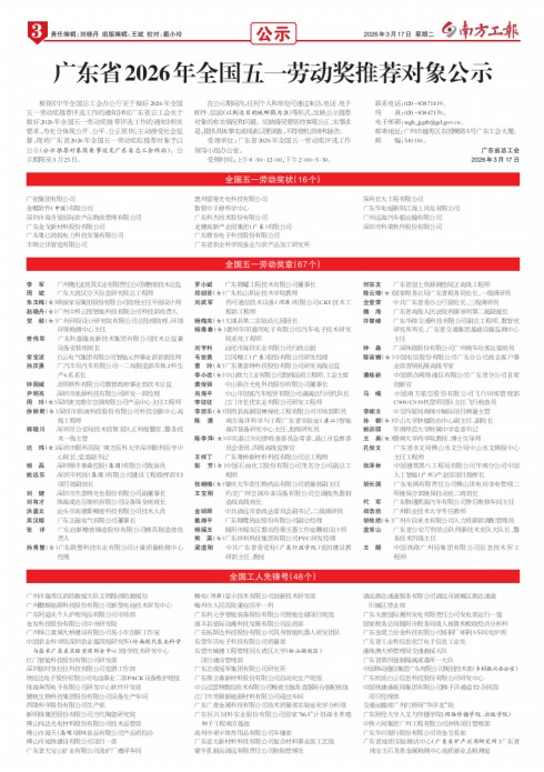 根据《中华全国总工会办公厅关于做好2026年全国五一劳动奖推荐评选工作的通知》和《广东省总工会关于做好2026年全国五一劳动奖推荐评选工作的通知》相关要求,为充分体现公开、公平、公正原则,主动接