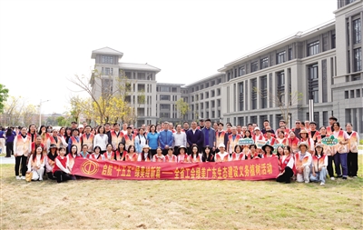 活动现场,省总工会机关干部职工、劳模工匠及广东南华工商职业学院师生代表共约150人,在广东南华工商职业学院清远校区国匠楼沿湖区域,合力种下苗木1000余棵,种植面积达22000多平方米。
