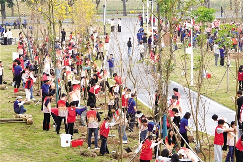 值得一提的是,不少地区聚焦工会主责主业,积极探索推出“义务植树+工会服务”新模式,精心设计活动内容,丰富活动内涵,提升活动效果。比如,广州市总工会将“工会林”义务植树活动与职工春游、青年职工交友联谊及职工亲子活动统筹开展;云浮市总工会将植树活动融入职工集体婚礼仪式中,让新人们共同种植象征永结同心、幸福长久的“同心树”,打造“工会幸福林”;中山市总工会则在植树节发起“晒‘绿’有奖,为绿美中山充‘植’”照片征集活动,邀请广大中山职工晒出镜头里的“绿色瞬间”,为绿美中山添彩。