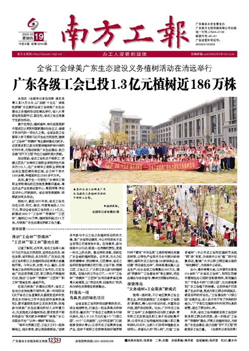 广东各级工会已投1.3亿元植树近186万株