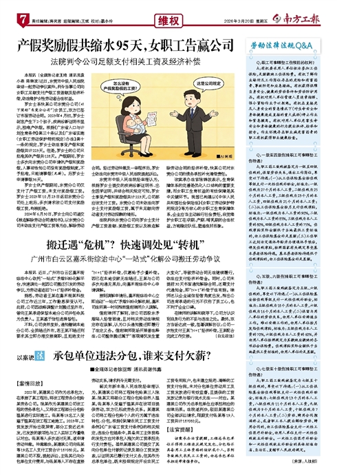 - 产假奖励假共缩水95天,女职工告赢公司 ■AI制图 本报讯 (全媒体记者王艳 通讯员袁小燕 陈锦波)近日,东莞市中级人民法院审结一起劳动争议案件,判令当事公司向女职工足额支付产假工资差额及经济补偿,依法维护女性劳动者合法权益。