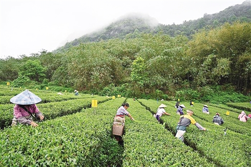 ■茶农在英德市积庆里茶厂采摘春茶。中新社记者 陈楚红/摄