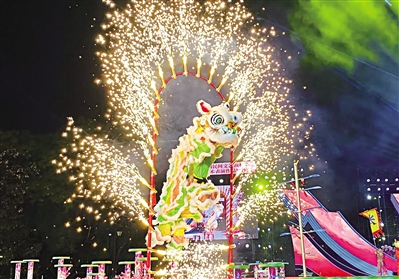 ■醒狮作品《岭南雄狮飞跃刀山过火海》表演现场。省民协/供图